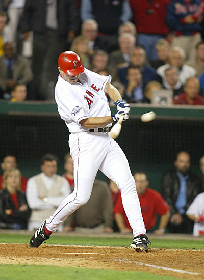 Each team went scoreless through the first four innings. Kevin Appier was the starter for the Angels and Russ Ortiz for the Giants. Not great pitchers by any stretch, but dependable starters for their clubs. Appier began to get into trouble in the fifth inning when Giants DH Shawon Dunston hit a two run HR just clearing the inside part of the foul pole in left field. Later that inning, 2B Jeff Kent drove in another run off reliever Francisco Rodriguez to give the Giants a 3-0 lead after five. In the sixth, the Giants added another with LF Barry Bonds’ 4th HR of the series. 4-0 Giants after six. CF Kenny Lofton would score in the seventh on a wild pitch from Rodriguez. 5-0 Giants going into the bottom of the seventh. I can’t tell you how much it sucked to be watching that game and how it was turning out. However when the seventh inning stretch was over, things began to look better for the Halos.
