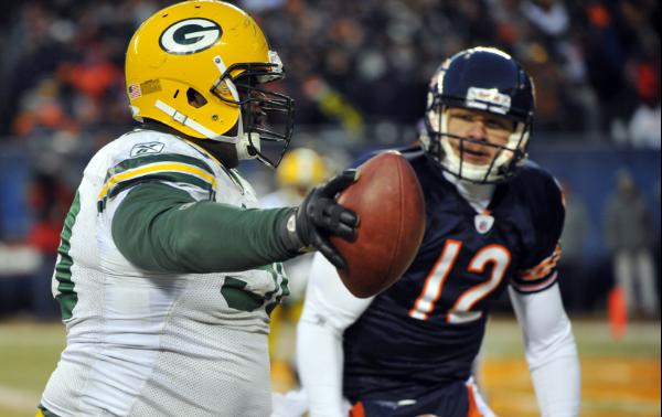 I know Jay Cutler was hurt and his toughness has come into question in the aftermath, but the Bears were almost crowned NFC Champions today. That’s a testament to Chicago’s defense. They were outplayed in all aspects of the game in the first half and yet they were only down 14-0. The second half was a brilliant bit of gameplanning by the Chicago coaching staff. Aaron Rodgers was forcing throws and Green Bay couldn’t get anything going on the ground. Chicago also got another bit of luck with their third string quarterback Caleb Hanie leading the way at the end of the 3rd and the entire 4th quarter. Not only did he wake the Bears offense, but the defense started to play even better down the stretch. The passing game was awoken and it resulted in two 4th quarter touchdowns. Unfortunately for two moments Hanie realized that he was a third string quarterback. Throwing a game winning interception that resulted in a touchdown to Packers defensive tackle B.J. Raji (pictured above) and another to end the game to Sam Shields. Green Bay should count their blessings and thank their defense for getting them to their 5th Super Bowl in franchise history. Aaron Rodgers can get flustered from time to time like any quarterback who is under pressure and faces good coverage. He won’t always win it for them and they will need the entire team to play their ‘A’ game if they want to beat their next opponent.