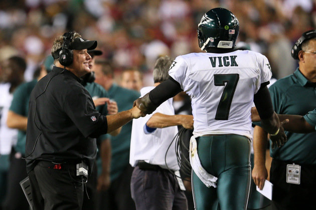I had my misconceptions about former Oregon head coach Chip Kelly and his offense working in the NFL. I didn’t think it would look like the Oregon Ducks would be playing the Washington Redskins on Monday night, but it actually did. The only flaw I thought about was the health of Eagles QB Michael Vick. Will he be able to stay healthy for an entire season? History shows that he won’t. Although the offensive line in front of him is perhaps the best he’s ever played behind in his entire career so it could bode well for him and the Eagles. RB LeSean McCoy looks to be having a lot of fun in the read option type offense and the Redskins defense had no answer for it. Speaking of the Redskins, QB Robert Griffin didn’t look comfortable throughout the entire game. There’s still plenty of games left in the season, but he looks like his routine is out of whack and he’ll need to get that fixed in a hurry. Chip Kelly looks good after his first game, but if Michael Vick goes down will this offense work with backup QB Nick Foles?