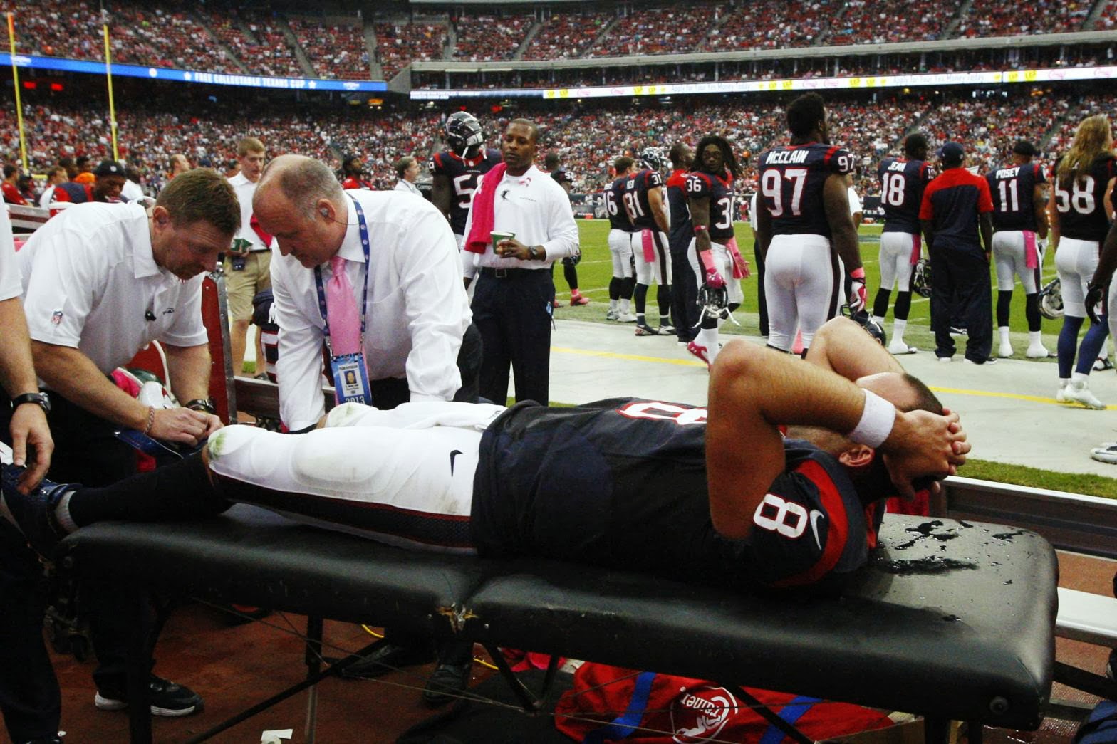 You know it’s bad when your home fans cheer seeing your starting quarterback being taken off the field due to injury. That’s what happened when Texans QB Matt Schaub’s ankle was rolled over by St. Louis Rams DE Chris Long. It wasn’t a dirty play by any means. You see it all the time now in football. What you don’t want to see is the fans that cheered Schaub getting hurt. I get that he hasn’t been the guy you expected him to be and that most Texans fans would have expected a Super Bowl appearance by now let alone an AFC Championship game. That doesn’t mean you need to lower yourself to barbarism and cheer someone’s pain. I get that it was a select few, but they need to be called out for what it is. In a football sense it was interesting to see if backup T.J. Yates would fair any better, but on that very drive after Schaub was hurt, Yates threw an interception that was returned for a touchdown by the Rams. Guess that idea won’t work either. If Schaub misses a significant portion of the season it doesn’t bode well for the Texans. No matter how you look at it the Texans are better with him. Going forward it doesn’t look that way. If Houston should finish with a losing record this year it will likely mean a lot of coaches and players will be looking for work elsewhere next year. Possibly even some front office officials. Regardless of their outcome the Texans are better than their record indicates and they need to start playing with some urgency.
