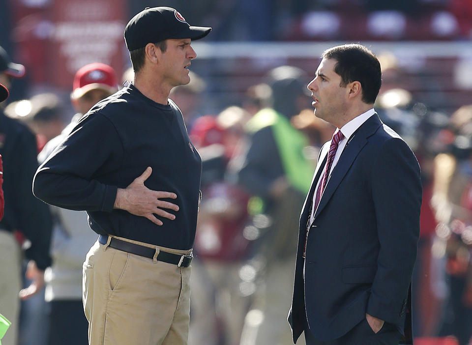 The New York Jets, Atlanta Falcons, Chicago Bears and San Francisco 49ers all made head coaching changes once the season ended. New York and Chicago also fired their general managers and look to make a lot more changes in the near future. The most talked about head coaching change has been the one in Santa Clara, California. It really has been talked about all year long sadly. The 49ers and Jim Harbaugh mutually parted ways without any ill will towards one another which is rare this day and age. “Philosophical differences” was the reason Jed York (pictured above right) decided to let Harbaugh go. Jim in turn found a new home by taking the head coaching job at his alma mater, Michigan University. York essentially is looking for the next Bill Walsh, which I say as a 49er fan, good luck. You won’t find another. There are plenty of great coaches out there and while I didn’t like how all the blame seemed to be put on Harbaugh’s shoulders, he does deserve some, you’ll be hard pressed to find a better coach than him for this team. Harbaugh was loyal to a fault with some of his players and that gave others a chance to question the decision making. Regardless it will be an interesting offseason for these four teams looking for new voices.