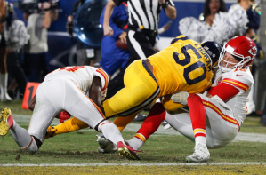 Besides the first defensive touchdown in the second quarter (there were 3 total for the game), you might have had the impression that either teams defenses’ wouldn’t show up for this one. On the contrary they did, but the offenses’ were just so damn good. Samson Ebukam recovered Mahomes’ fumble in the second quarter for a touchdown and also intercepted him for the second defensive touchdown late in the third quarter to put the Rams up 40-30. When Mahomes threw a 73-yard bomb to Tyreek Hill early in the 4th quarter, the Chiefs defense answered the call and caused a fumble to Jared Goff and returned it easily for a touchdown to put the Chiefs up 44-40. The Rams got the last laugh as Goff threw his last two touchdown passes to TE Gerald Everett, including a 40-yard toe tapper down the sidelines for the game winning score.