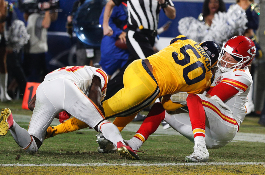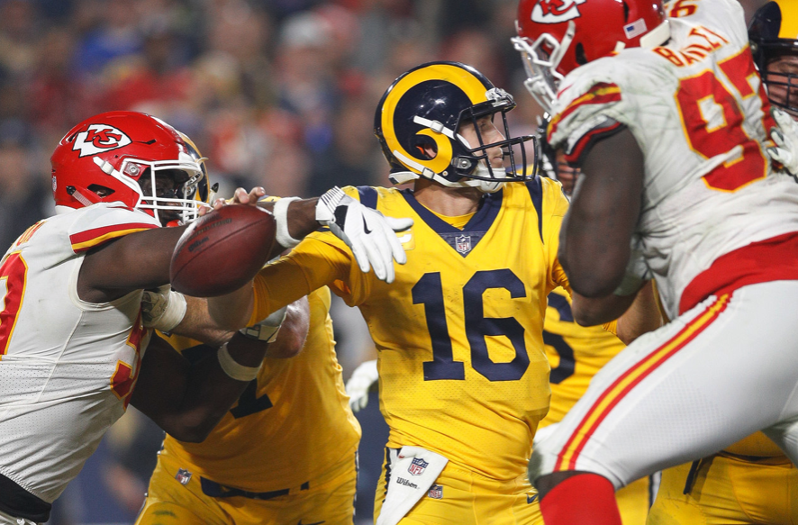 Besides the first defensive touchdown in the second quarter (there were 3 total for the game), you might have had the impression that either teams defenses’ wouldn’t show up for this one. On the contrary they did, but the offenses’ were just so damn good. Samson Ebukam recovered Mahomes’ fumble in the second quarter for a touchdown and also intercepted him for the second defensive touchdown late in the third quarter to put the Rams up 40-30. When Mahomes threw a 73-yard bomb to Tyreek Hill early in the 4th quarter, the Chiefs defense answered the call and caused a fumble to Jared Goff and returned it easily for a touchdown to put the Chiefs up 44-40. The Rams got the last laugh as Goff threw his last two touchdown passes to TE Gerald Everett, including a 40-yard toe tapper down the sidelines for the game winning score.