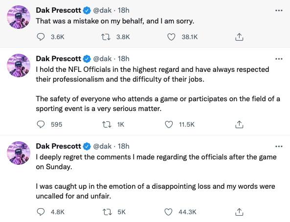 Update: Dak Prescott’s apology on January 18. Two days after the game.