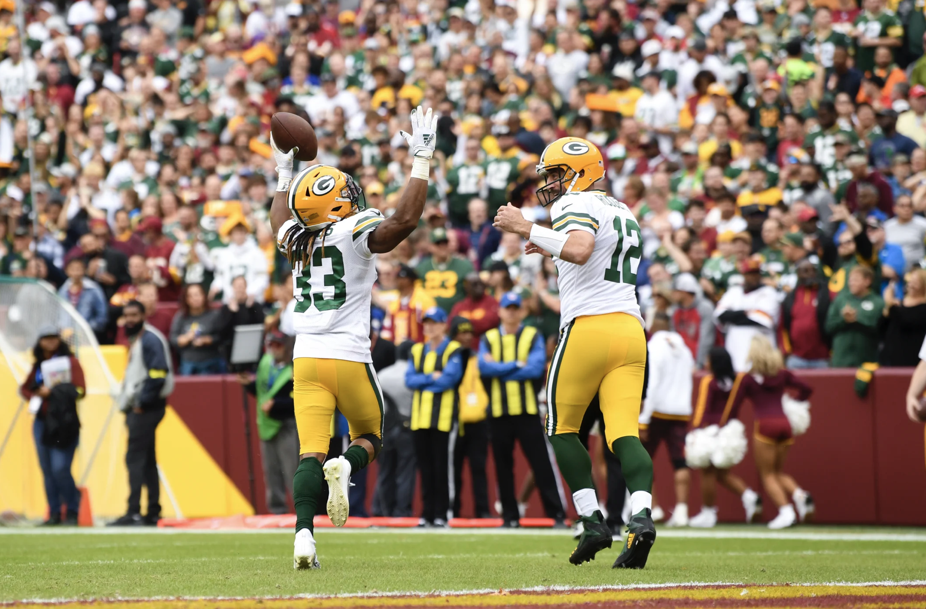 If I had to say one thing about the way the Green Bay Packers have been playing of late, it’s that they have abandoned running the ball with the two capable running backs at their disposal. Aaron Jones is averaging 5.5 yards per attempt and AJ Dillon is averaging 3.9 yards per attempt. Both can be utilized in the passing game as well. More so with Aaron Jones, but the fact remains that the Packers are not involving these two nearly as much as they need to in the midst of their 3-game losing streak. This last loss to Washington was puzzling to say the least. They only ran the ball 12 times in a close game. Aaron Jones did make 9 catches and scored 2 touchdowns receiving, but AJ Dillon was a non-factor. If head coach Matt LaFleur wants to right this ship this trend has to change and fast. QB Aaron Rodgers isn’t getting any younger and he doesn’t have a lot of go-to options in the passing game. Run the damn ball.