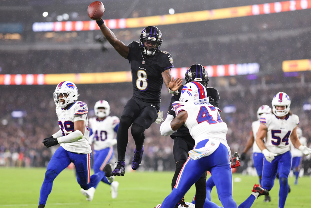 I was expecting the Baltimore Ravens to allow the Buffalo Bills to eventually comeback in their Sunday night contest. It was beginning to happen in the second half with the Ravens allowing a Bills touchdown to narrow their lead to 21-10. The Ravens offense was beginning to stall and Buffalo was driving for another score. Then Baltimore’s defense forced a fumble from Bills QB Josh Allen and all the momentum shifted back to the Ravens. Two more touchdowns were scored by QB Lamar Jackson and RB Derrick Henry and the Ravens won the game convincingly. Baltimore ran the ball 34 times and attempted 19 passes. If you have TE Mark Andrews or WR Zay Flowers on your fantasy team, you’re not liking this kind of offense. This is what has worked for this franchise since they drafted Lamar Jackson. He is a capable passer, but as a scrambling quarterback first and foremost. He isn’t and will probably never be a capable pocket passer. You saw that in the AFC Championship game last year and in previous playoff games before that. They brought in Derrick Henry to lessen the reliability of Jackson running the ball more than 10 times a game. This is what will work for them, but I still have doubts that when push comes to shove in January that they will revert back to what hasn’t worked for them once again.
